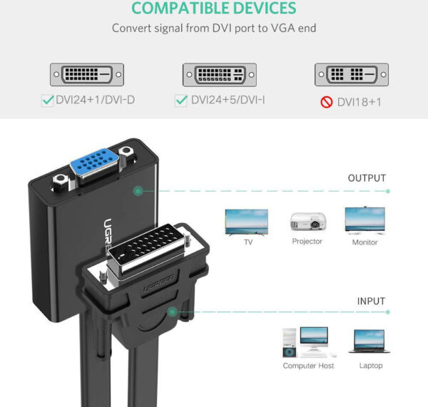 Améliorez votre connectivité avec l’adaptateur Ugreen DVI-D vers VGA. Conçu pour convertir un signal numérique DVI-D en VGA analogique, cet adaptateur actif offre une résolution Full HD 1080p à 60 Hz et prend en charge la 3D. Idéal pour relier un PC, un lecteur DVD, un moniteur, une TV HD ou un projecteur. Grâce à sa taille compacte de 30 cm, il est pratique et facile à utiliser. Choisissez la performance et la compatibilité pour vos besoins multimédia et professionnels.