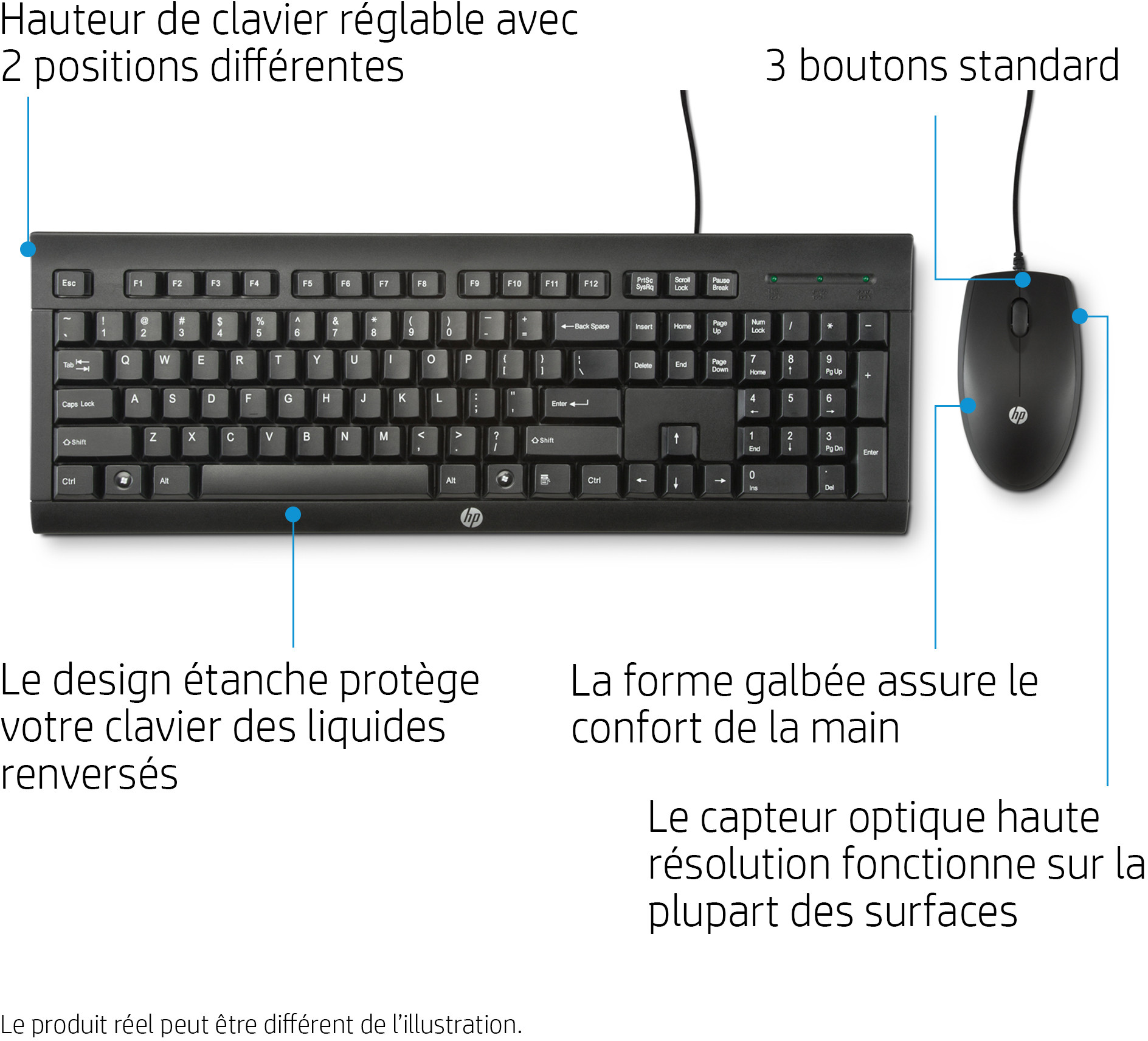 Le combo HP Desktop C2500 réunit tous les éléments dont vous avez besoin dans une même solution. Augmentez votre productivité avec la souris à 3 boutons et le clavier performants. Profitez de fonctionnalités mises à jour et améliorées, notamment de pieds réglables et d’une conception anti-éclaboussures.