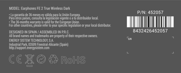 Écoutez sans limites avec les écouteurs Energy Sistem FE 2 True Wireless en noir. Grâce à la technologie Bluetooth 5.0, profitez d’une connexion sans fil fluide et de 4 heures d’autonomie par écouteur, avec 16 heures supplémentaires grâce au boîtier de charge compact. Les appels stéréo offrent une clarté exceptionnelle, et le 1 design intra-auriculaire assure un confort optimal. Avec une garantie de 36 mois, ces écouteurs sont un choix fiable et performant pour un usage quotidien.