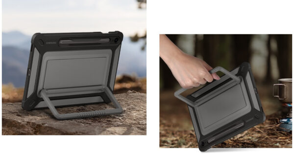Protégez votre Galaxy Tab S9 FE avec assurance grâce à la robustesse militaire de cet étui extérieur Samsung. Conçu pour résister aux chutes et aux chocs mineurs (norme MIL-STD 810G-516.7), il offre un support stable en mode paysage et une poignée pratique pour un transport sûr. L’emplacement dédié pour le S Pen assure un accès facile à votre stylet, tandis que la couleur noire élégante complète le design. Transportez votre tablette avec confiance, alliant protection et praticité.
