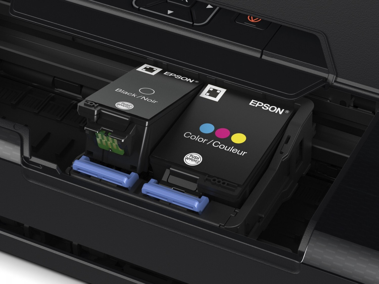 La WF-100W offre une vitesse d’impression ISO de 7 ppm en monochrome et de 4 ppm en couleur3. L’autonomie de ses consommables peut atteindre 250 pages en monochrome et 200 pages en couleur4. Dotée d’un écran LCD de 3,7 cm, cette imprimante permet une configuration rapide de la connexion Wi-Fi en se passant d’ordinateur de même qu’un contrôle des niveaux d’encre.