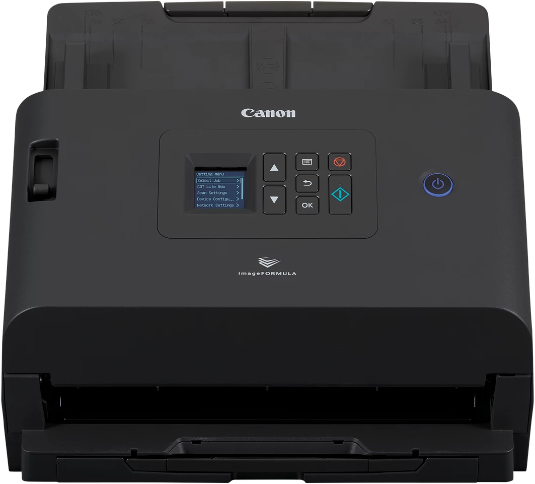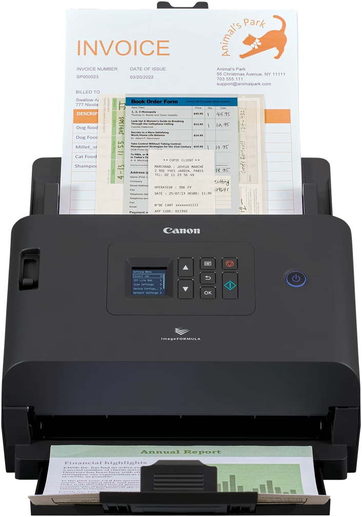 Formats acceptés: A4 (21.0×29,7 cm), A5 (14,8×21,0 cm), A6 (10,5×14,8 cm), A8, B5, B6, Letter, Legal, C6 (Enveloppe), DL (enveloppe), Carte postale, Cartes de visite, Cartes en plastique, Défini par l’utilisateur, A3 avec fonction de stitching